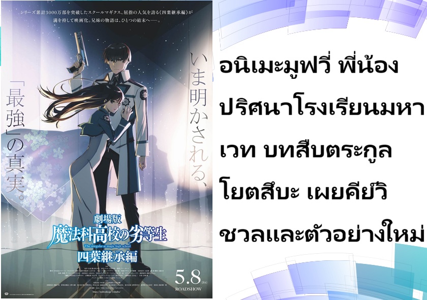 อนิเมะมูฟวี่ พี่น้องปริศนาโรงเรียนมหาเวท บทสืบตระกูลโยตสึบะ (The Irregular at Magic High School: Yotsuba Succession Arc) เผยภาพคีย์วิชวลและตัวอย่างใหม่ออกมาแล้ว