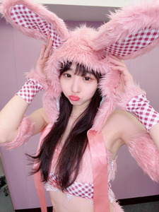 คุณโมโมตะโพสต์ภาพในลุคกระต่ายน้อยสีชมพู พร้อมแคปชั่นว่า "กระต่ายน้อยสีชมพูที่ค่อยๆ ขยับเข้ามาใกล้ๆ"