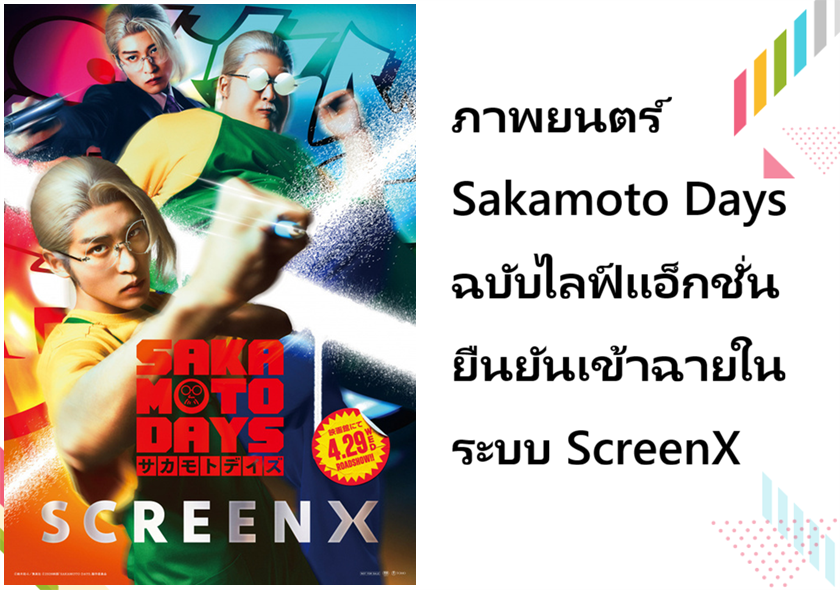 ภาพยนตร์ Sakamoto Days ฉบับไลฟ์แอ็กชั่น ยืนยันเข้าฉายในโรงภาพยนตร์ระบบ ScreenX ทั่วประเทศญี่ปุ่น เพื่อต้อนรับช่วงเทศกาลหยุดยาว Golden Week ในวันที่ 29 เมษายนนี้