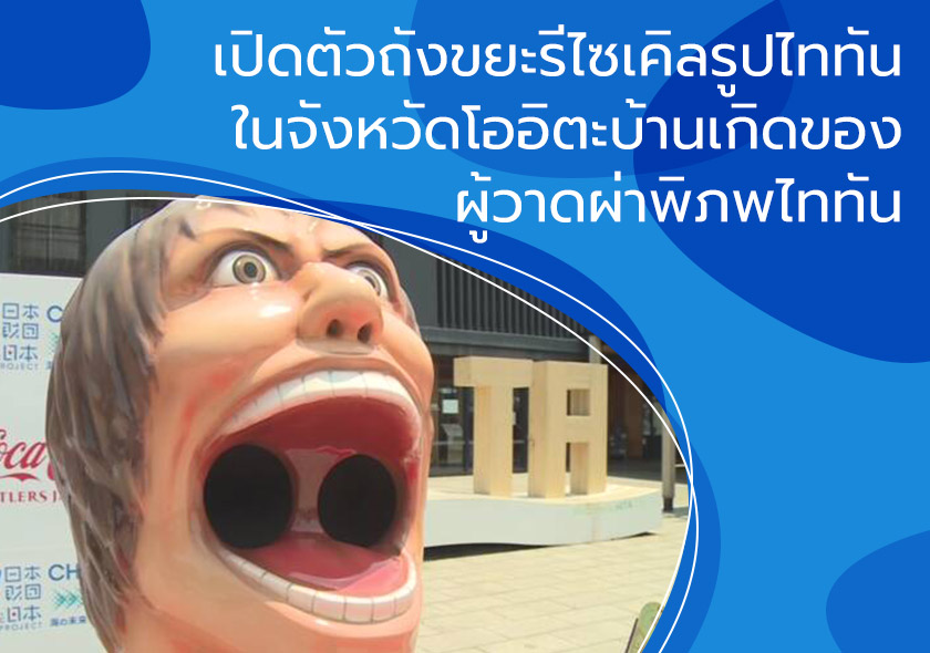 เปิดตัวถังขยะรีไซเคิลรูปไททันในจังหวัดโออิตะบ้านเกิดของผู้วาดผ่าพิภพไททัน