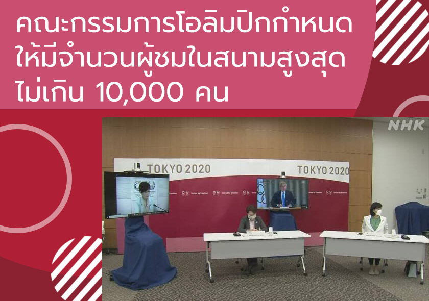 จากการประชุมข้างต้น คณะกรรมการจัดงานโตเกียวโอลิมปิกจึงได้ตัดสินใจกำหนดให้มีจำนวนผู้ชมในสนามแข่งของรายการต่างๆ ได้สูงสุดไม่เกิน 10,000 คน และต้องไม่เกิน 50% ของความจุของสถานที่ และไม่มีการเปิดรับผู้ชมจากต่างประเทศ