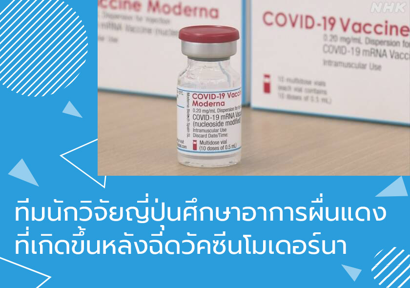 ทีมนักวิจัยของกระทรวงสาธารณสุข แรงงาน และสวัสดิการของญี่ปุ่น ได้ทำการศึกษาเกี่ยวกับอาการผื่นแดงที่ขึ้นตามแขน ซึ่งเกิดขึ้นหลังจากการฉีดวัคซีนโควิด-19 ของโมเดอร์นา