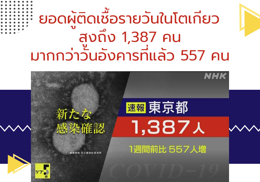 ยอดผู้ติดเชื้อรายวันในโตเกียวสูงถึง 1,387 คน มากกว่าวันอังคารที่แล้ว 557 คน
