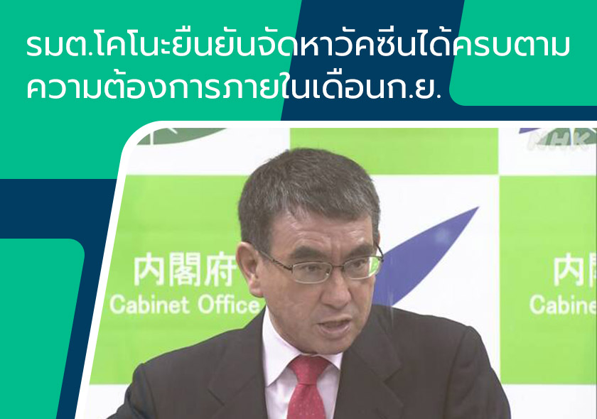 รมต.โคโนะยืนยันจัดหาวัคซีนได้ครบตามความต้องการภายในเดือนก.ย.