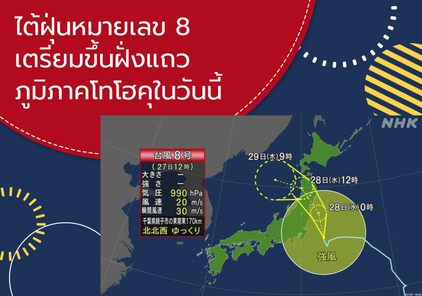ไต้ฝุ่นหมายเลข 8 เตรียมขึ้นฝั่งแถวภูมิภาคโทโฮคุในวันนี้