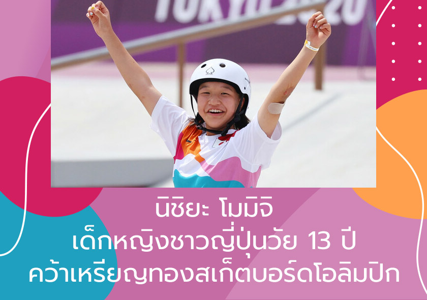 นิชิยะ โมมิจิ เด็กหญิงชาวญี่ปุ่นวัย 13 ปี 10 เดือน คว้าแชมป์เหรียญทองโอลิมปิกในการแข่งขันสเก็ตบอร์ดประเภทสตรีทหญิง เมื่อวันที่ 26 กรกฏาคม