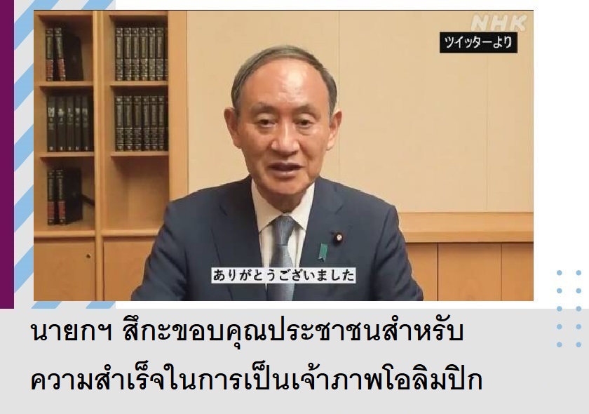 นายกฯ สึกะขอบคุณประชาชนสำหรับความสำเร็จในการเป็นเจ้าภาพโอลิมปิก