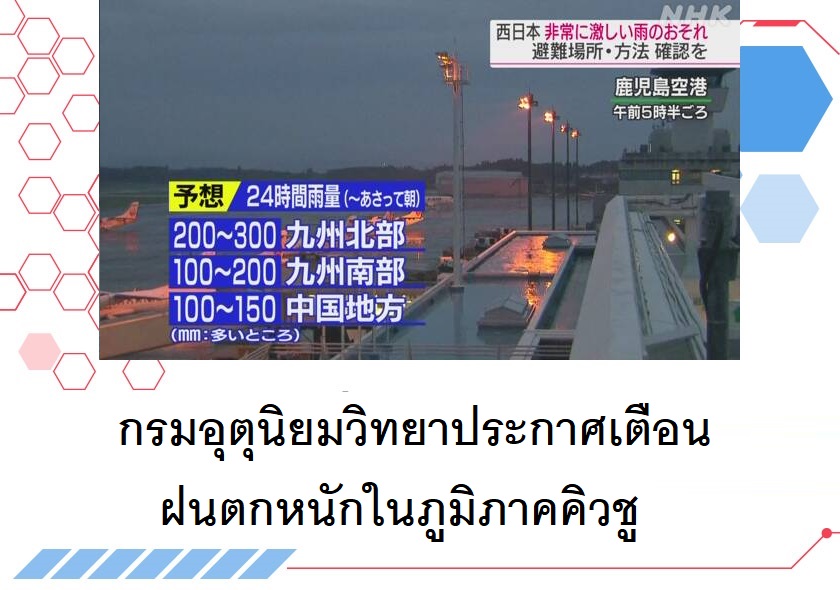 กรมอุตุนิยมวิทยาประกาศเตือนฝนตกหนักในภูมิภาคคิวชู