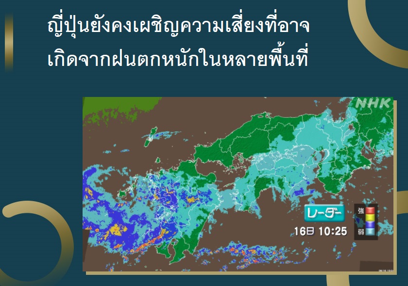 ญี่ปุ่นยังคงเผชิญความเสี่ยงที่อาจเกิดจากฝนตกหนักในหลายพื้นที่