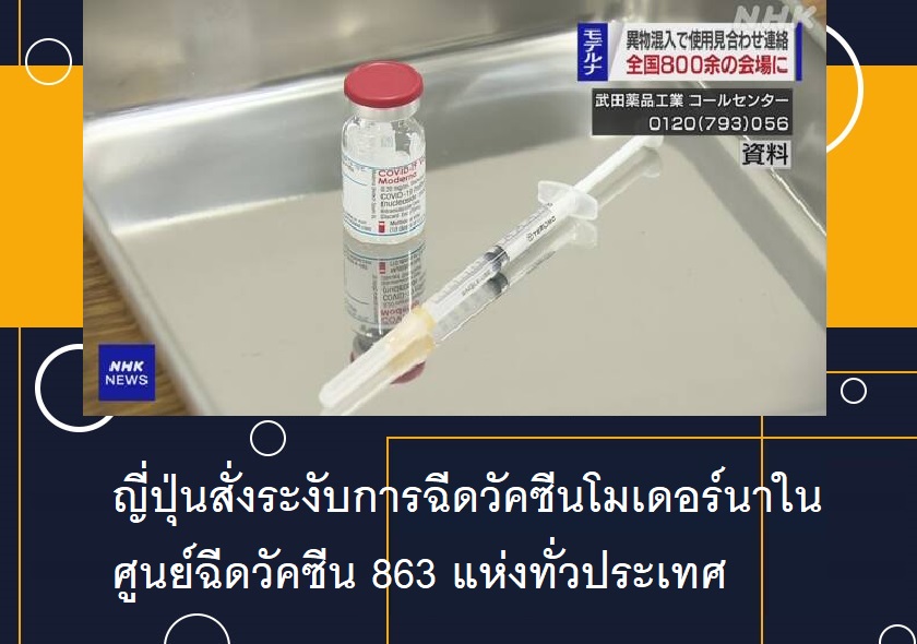 กระทรวงสาธารณสุข แรงงาน และสวัสดิการ ได้ประสานงานไปยังศูนย์ฉีดวัคซีน 863 แห่งทั่วญี่ปุ่น เพื่อระงับการฉีดวัคซีนโมเดอร์นาหลังพบว่ามีสิ่งแปลกปลอมเจือปนอยู่ในขวดแก้วที่ใช้บรรจุวัคซีนในบางล็อต