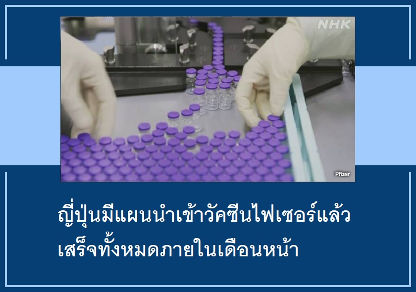 ญี่ปุ่นมีแผนนำเข้าวัคซีนไฟเซอร์แล้วเสร็จทั้งหมดภายในเดือนหน้า