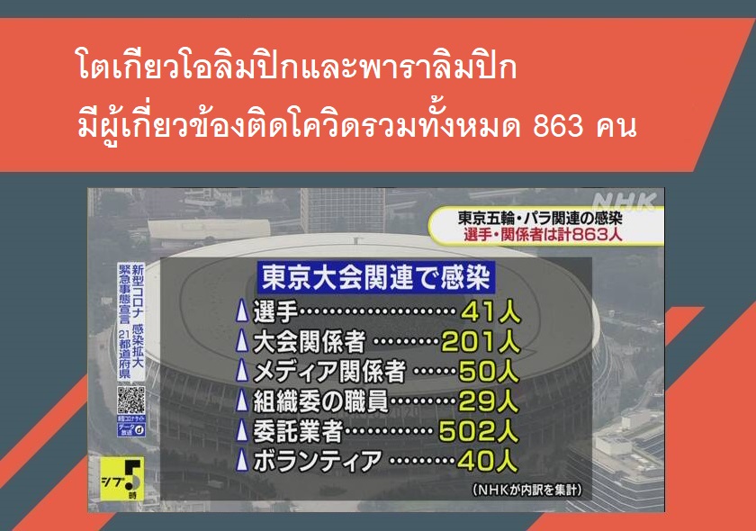 โตเกียวโอลิมปิกและพาราลิมปิก มีผู้เกี่ยวข้องติดโควิดรวมทั้งหมด 863 คน