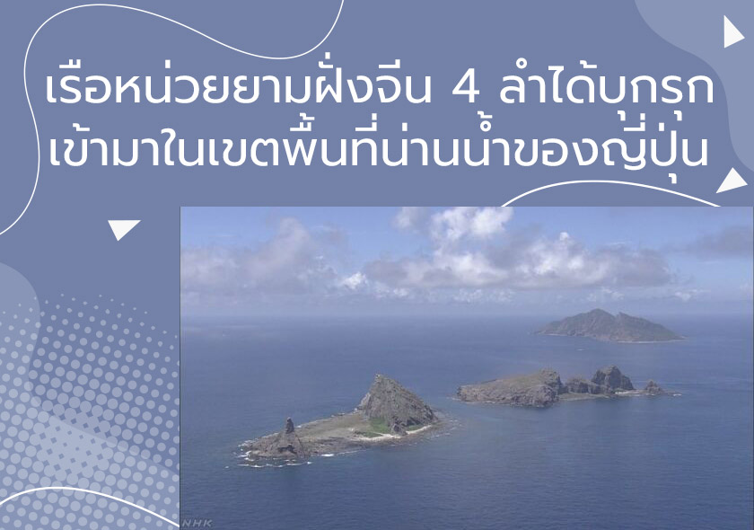 เรือหน่วยยามฝั่งจีน 4 ลำได้บุกรุกเข้ามาในเขตพื้นที่น่านน้ำของญี่ปุ่น