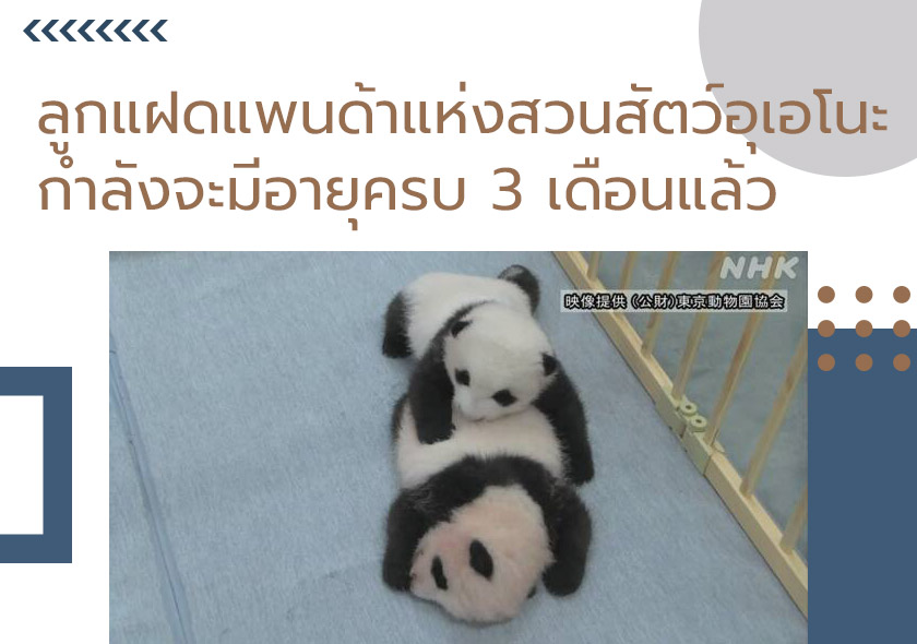ลูกแพนด้าแฝดชายหญิงที่เกิดจากแพนด้ายักษ์ "ชินชิน" (Xing Xing) เมื่อวันที่ 23 มิถุนายนที่สวนสัตว์อุเอโนะ กรุงโตเกียว กำลังจะมีอายุครบ 3 เดือนในวันที่ 23 กันยายนนี้แล้ว