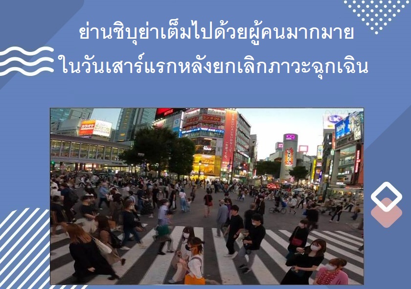 ย่านชิบูย่า กรุงโตเกียว เมื่อวันเสาร์ที่ 2 ตุลาคม ซึ่งเป็นวันเสาร์แรกหลังการยกเลิกประกาศภาวะฉุกเฉิน ได้เต็มไปด้วยผู้คนมากมาย ตลอดจนคนหนุ่มสาวที่เพลิดเพลินไปการกินดื่ม