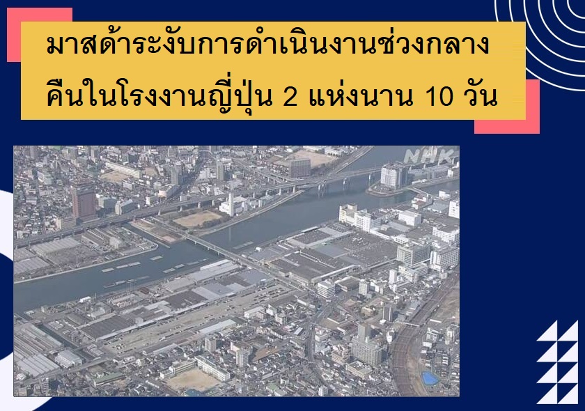 มาสด้า หนึ่งในบริษัทผู้ผลิตรถยนต์รายใหญ่ของญี่ปุ่นได้มีแผนระงับสายการผลิตช่วงกลางคืนในโรงงาน 2 แห่งที่จังหวัดฮิโรชิม่าและจังหวัดยามากุจิเป็นเวลา 10 วัน ตั้งแต่วันที่ 11-22 ตุลาคมนี้