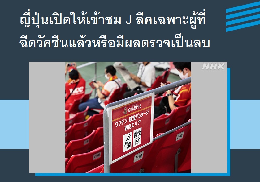 ญี่ปุ่นเปิดให้เข้าชม J ลีคเฉพาะผู้ที่ฉีดวัคซีนแล้วหรือมีผลตรวจเป็นลบ