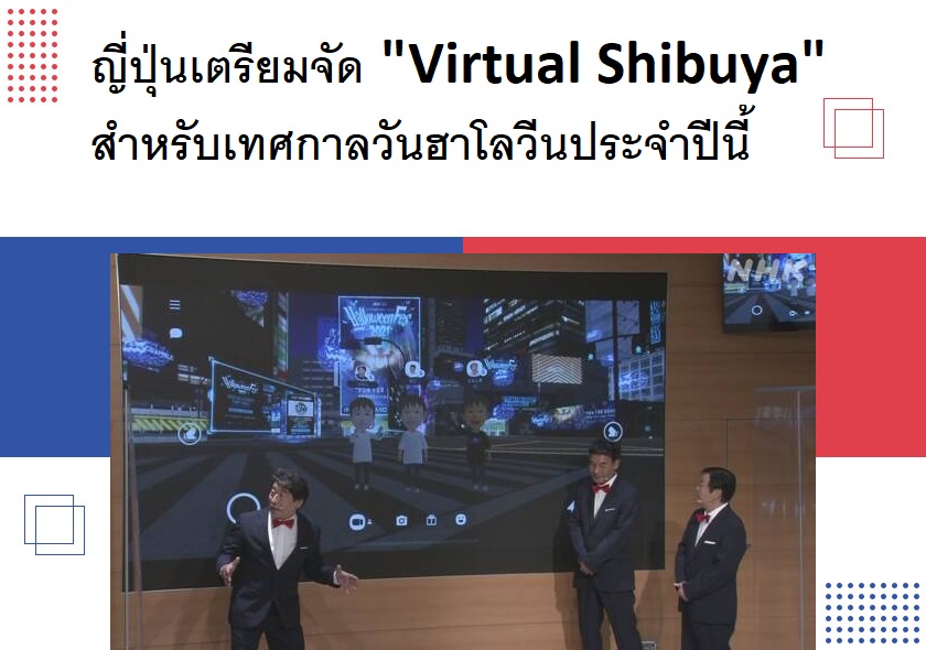 สมาคมการท่องเที่ยวชิบุย่ากรุงโตเกียวร่วมกับ KDDI ผู้ให้บริการเครือค่ายมือถือรายใหญ่ของญี่ปุ่นเตรียมจัดเทศกาลฮาโลวีนทางออนไลน์ในชื่อว่า "Virtual Shibuya" ที่จะให้ผู้เล่นได้สัมผัสประสบการณ์ราวกับได้ไปยืนอยู่ท่ามกลางผู้คนกลางห้าแยกชิบูย่า เพื่อสนุกสนานไปกับกิจกรรมต่างๆ ของเทศกาลฮาโลวีน ผ่านทางอวตาร์ที่ตนสร้างขึ้นด้วยแอพลิเคชั่นที่สามารถเข้าใช้ได้ทั้งทางสมาร์ทโฟน PC หรืออุปกรณ์ VR โดยไม่ต้องออกจากบ้านเพื่อเสี่ยงกับการติดเชื้อโควิด ระหว่างวันที่ 16-31 ตุลาคมนี้