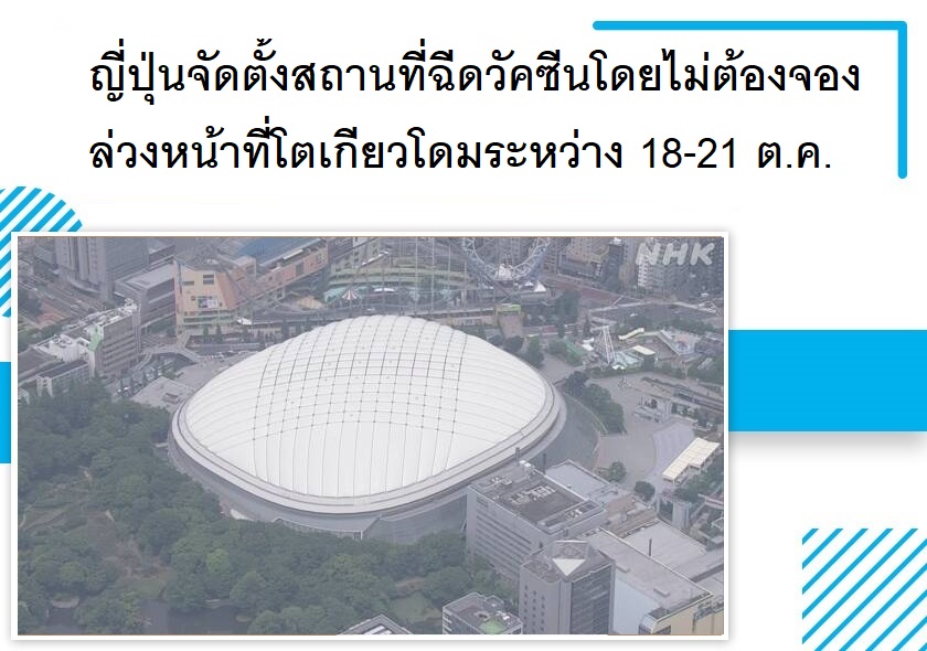 ญี่ปุ่นจัดตั้งสถานที่ฉีดวัคซีนโดยไม่ต้องจองล่วงหน้าที่โตเกียวโดมระหว่าง 18-21 ต.ค.