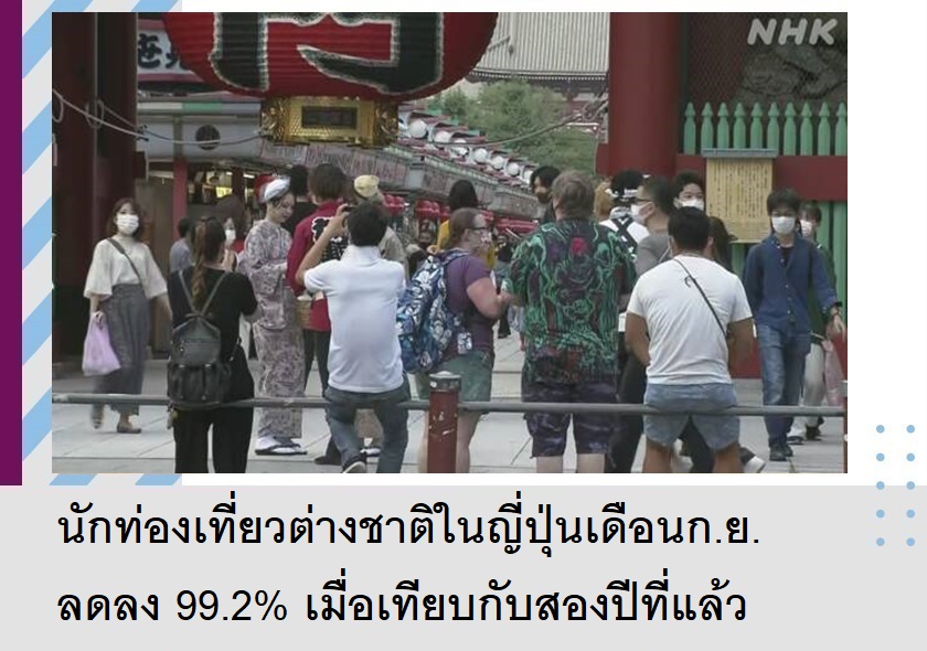 นักท่องเที่ยวต่างชาติในญี่ปุ่นเดือนก.ย.ลดลง 99.2% เมื่อเทียบกับสองปีที่แล้ว
