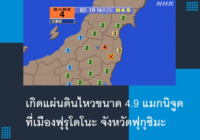 เกิดแผ่นดินไหวขนาด 4.9 แมกนิจูดที่เมืองฟุรุโดโนะ จังหวัดฟุกุชิมะ