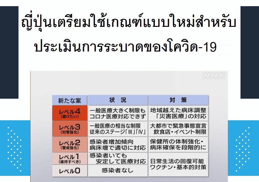 รัฐบาลญี่ปุ่นเตรียมใช้เกณฑ์ประเมินสถานการณ์การระบาดของโควิด-19 แบบใหม่ที่จะโฟกัสความสำคัญกับความตึงเครียดของระบบการแพทย์อย่างจำนวนเตียงผู้ป่วยเป็นหลัก