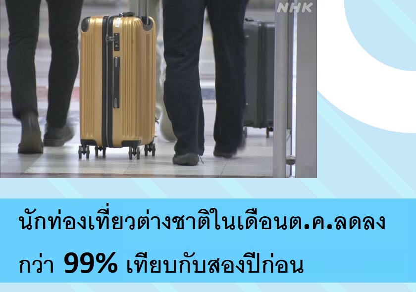 ตัวเลขดังกล่าวเมื่อเทียบกับเดือนตุลาคมปี 2019 ซึ่งเป็นช่วงก่อนการระบาดของโควิด-19 นับว่าจำนวนนักท่องเที่ยวชาวต่างชาติลดลงไปถึง 99.1% เลยทีเดียว