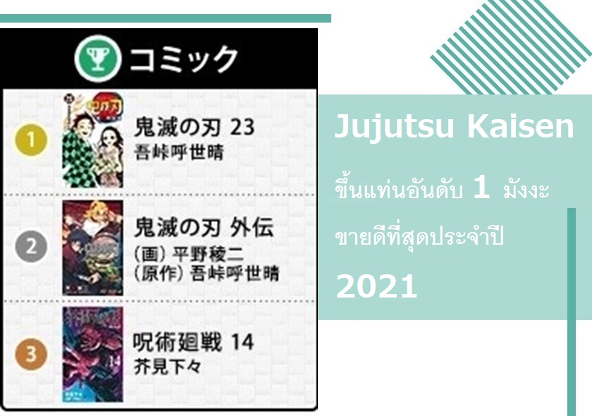 เมื่อวันที่ 29 พฤศจิกายน เว็บไซต์ Oricon ได้เปิดเผยอันดับยอดขายมังงะประจำปี 2021 ออกมาแล้วดังนี้