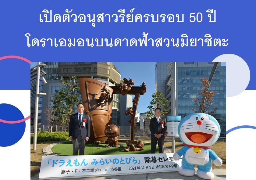 เปิดตัวอนุสาวรีย์ครบรอบ 50 ปีโดราเอมอนบนดาดฟ้าสวนมิยาชิตะ