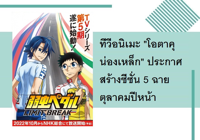 สำหรับชื่ออย่างเป็นทางการของทีวีซีรีย์ซีซั่นที่ 5 คือ "Yowamushi Pedal: Limit Break" โดยสตูดิโอที่สร้างยังคงเป็น TMS Entertainment (Fruits Basket, Dr. Stone) เช่นเดียวกับซีซั่น 1-4 รวมถึงนักพากย์ชุดเดิมเช่นกัน