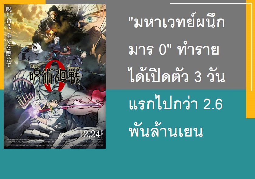 มหาเวทย์ผนึกมาร 0 ทำรายได้เปิดตัว 3 วันแรกไปกว่า 2.6 พันล้านเยน