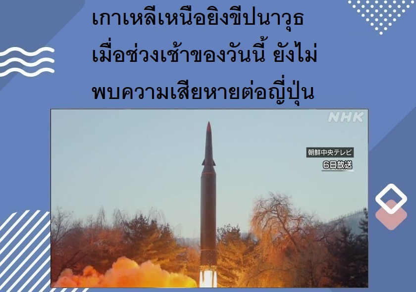 เกาเหลีเหนือยิงขีปนาวุธเมื่อช่วงเช้าของวันนี้ ยังไม่พบความเสียหายต่อญี่ปุ่น