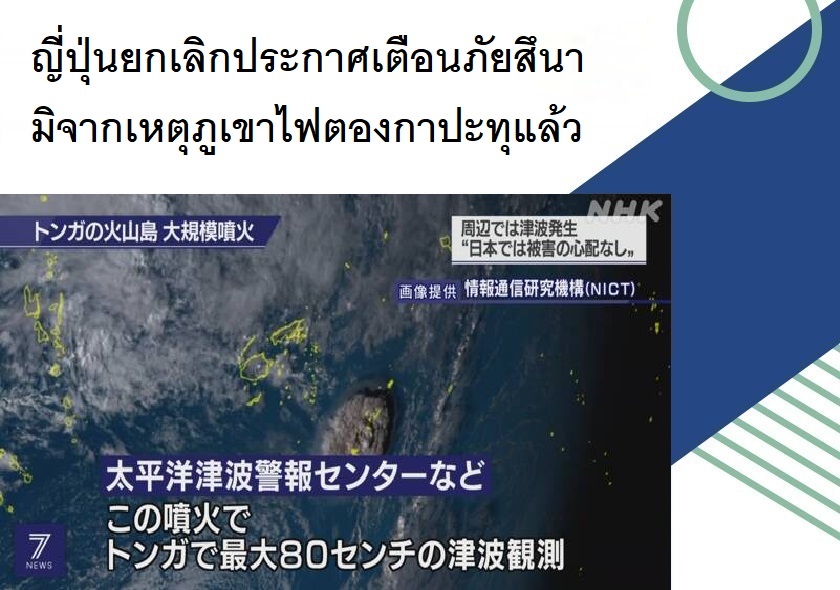 ญี่ปุ่นยกเลิกประกาศเตือนภัยสึนามิจากเหตุภูเขาไฟตองกาปะทุแล้ว