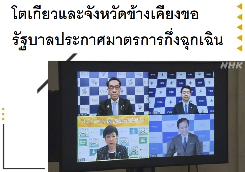 ผู้ว่าการกรุงโตเกียว และจังหวัดข้างเคียง ได้แก่ ไซตามะ ชิบะ และคานางาวะ ได้ประชุมร่วมกันทางออนไลน์เพื่อเตรียมขอให้รัฐบาลประกาศใช้มาตรการกึ่งฉุกเฉินเพื่อรับมือกับยอดผู้ติดเชื้อโควิด-19 ที่เพิ่มขึ้นอย่างรวดเร็ว