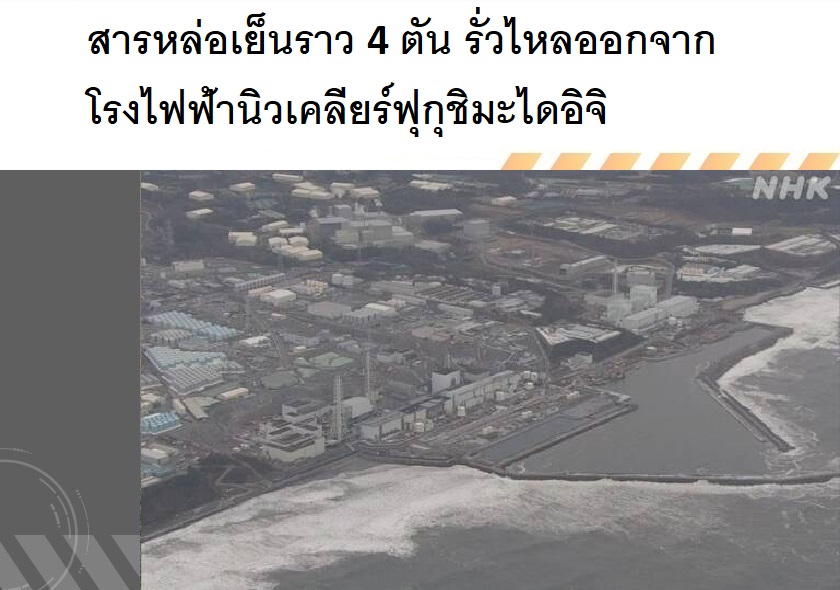 สารหล่อเย็นราว 4 ตัน รั่วไหลออกจากโรงไฟฟ้านิวเคลียร์ฟุกุชิมะไดอิจิ