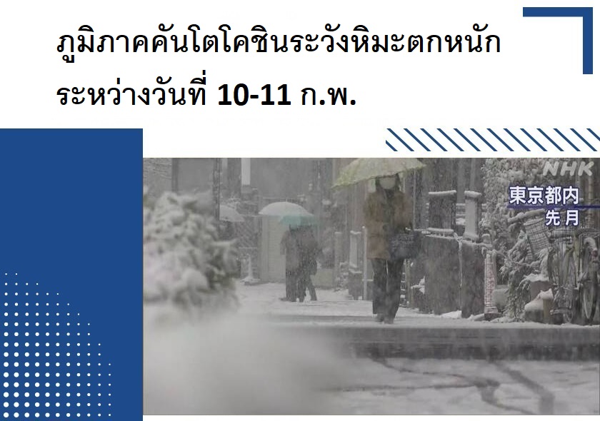 ภูมิภาคคันโตโคชินระวังหิมะตกหนักระหว่างวันที่ 10-11 ก.พ.