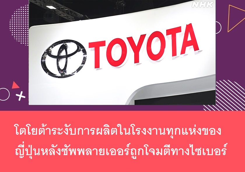 โตโยต้าระงับการผลิตในโรงงานทุกแห่งของญี่ปุ่นหลังซัพพลายเออร์ถูกโจมตีทางไซเบอร์