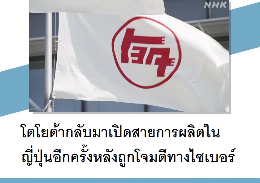 โตโยต้ากลับมาเปิดสายการผลิตในญี่ปุ่นอีกครั้งหลังถูกโจมตีทางไซเบอร์