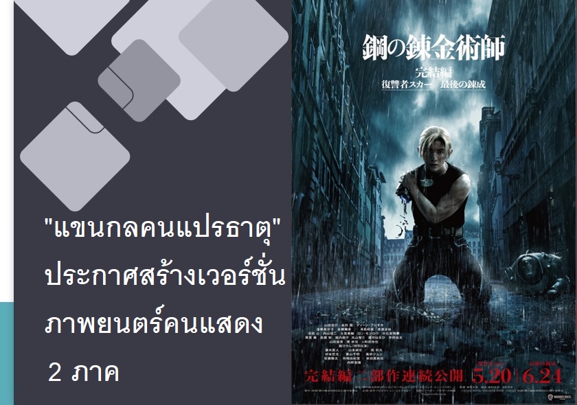 "แขนกลคนแปรธาตุ" หรือ "Fullmetal Alchemist" มังงะของอาจารย์อาราคาวะ ฮิโรมุ ได้ประกาศสร้างในรูปแบบภาพยนตร์คนแสดง 2 ภาค โดยมีรายละเอียดดังนี้