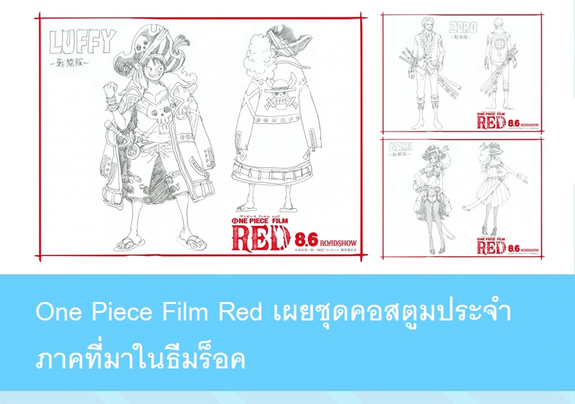 ทวิตเตอร์ทางการของ "One Piece Film Red" ภาพยนตร์อนิเมะวันพีซภาคล่าสุดได้เปิดเผยชุดคอสตูมประจำภาคของสมาชิกกลุ่มหมวกฟางทั้ง 10 คน ซึ่งออกแบบโดยอาจารย์โอดะ เอย์อิจิโร่ ผู้วาดมังงะวันพีซ และยังรับหน้าที่เป็นโปรดิวเซอร์สำหรับภาพยนตร์อนิเมะในภาคนี้ด้วย
