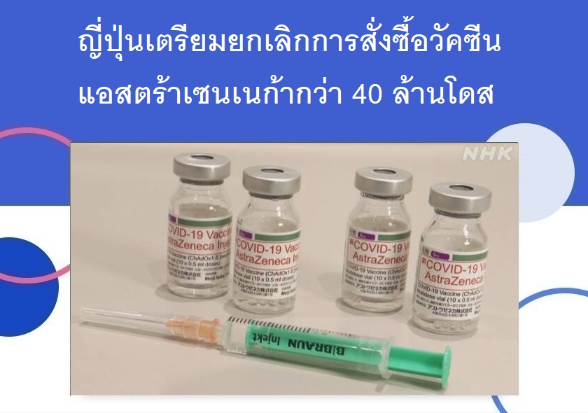 ญี่ปุ่นเตรียมยกเลิกการสั่งซื้อวัคซีนแอสตร้าเซนเนก้ากว่า 40 ล้านโดส