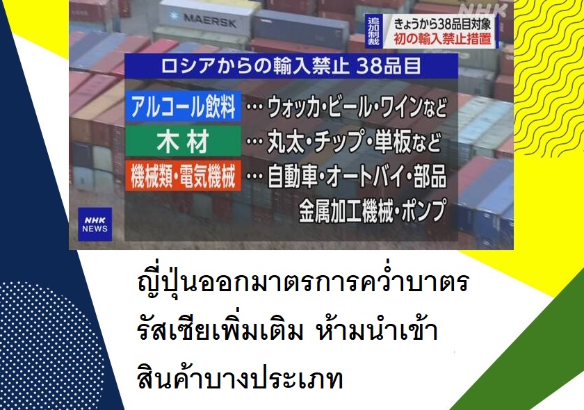 ญี่ปุ่นออกมาตรการคว่ำบาตรรัสเซียเพิ่มเติม ห้ามนำเข้าสินค้าบางประเภท