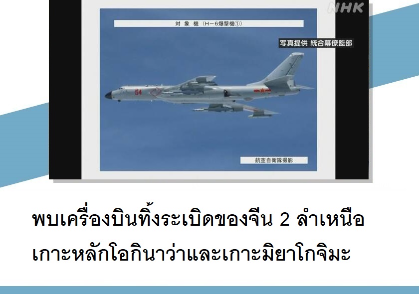 พบเครื่องบินทิ้งระเบิดของจีน 2 ลำเหนือเกาะหลักโอกินาว่าและเกาะมิยาโกจิมะ