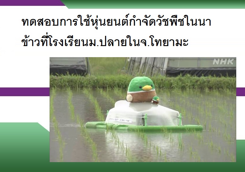 ทดสอบการใช้หุ่นยนต์กําจัดวัชพืชในนาข้าวที่โรงเรียนม.ปลายในจ.โทยามะ