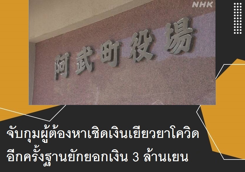 จับกุมผู้ต้องหาเชิดเงินเยียวยาโควิดอีกครั้งฐานยักยอกเงิน 3 ล้านเยน