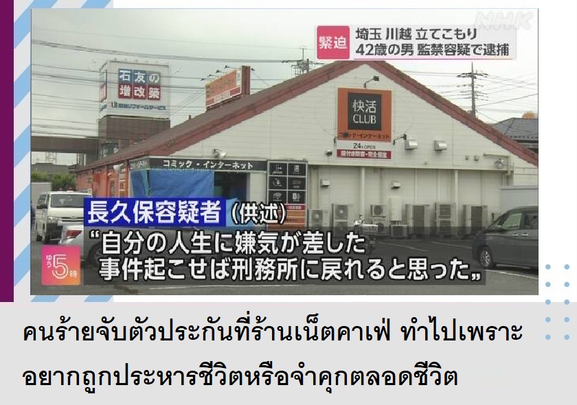 คนร้ายจับตัวประกันที่ร้านเน็ตคาเฟ่ ทำไปเพราะอยากถูกประหารชีวิตหรือจำคุกตลอดชีวิต