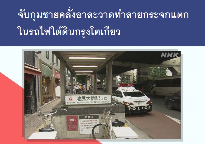 จับกุมชายคลั่งอาละวาดทำลายกระจกแตกในรถไฟใต้ดินกรุงโตเกียว
