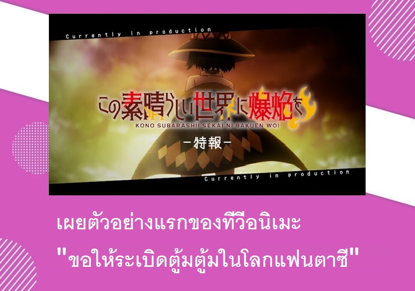 ทวิตเตอร์ทางการของทีวีอนิเมะ "Kono Subarashii Sekai ni Bakuen wo! (ขอให้ระเบิดตูมตามในโลกแฟนตาซี!)" ได้เผยตัวอย่างแรกในรูปแบบ Teaser PV ออกมาให้ชมกันแล้ว