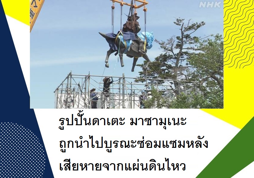 รูปปั้นดาเตะ มาซามุเนะ ถูกนำไปบูรณะซ่อมแซมหลังเสียหายจากแผ่นดินไหว