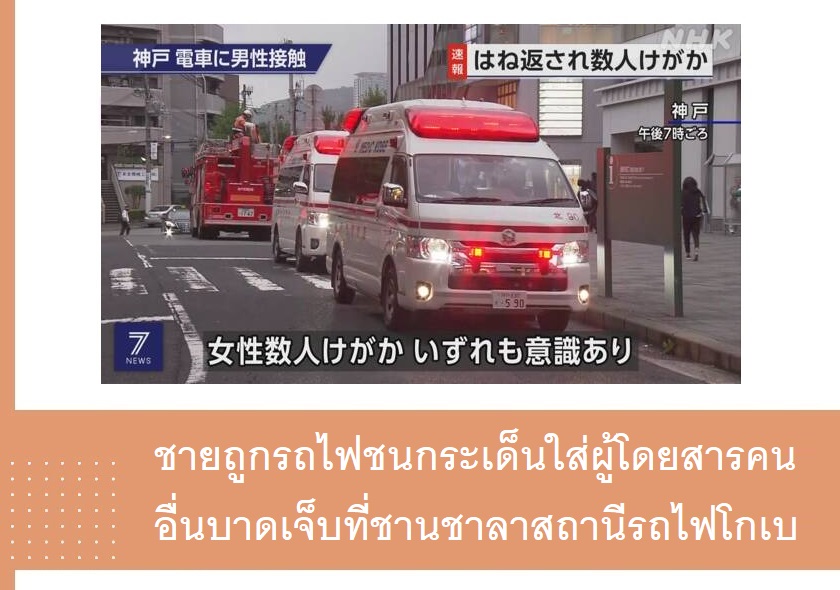 ชายถูกรถไฟชนกระเด็นใส่ผู้โดยสารคนอื่นบาดเจ็บที่ชานชาลาสถานีรถไฟโกเบ